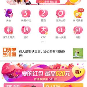 点链接,下载口碑APP,进入后,点《爱的红包,最高520元》,进入后,抢红包,一次不中,多抢几次。小希中了5.2元红包,满25元使用。