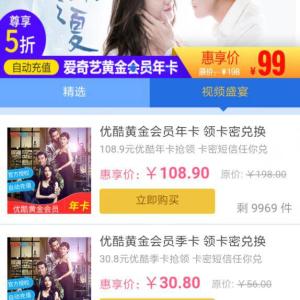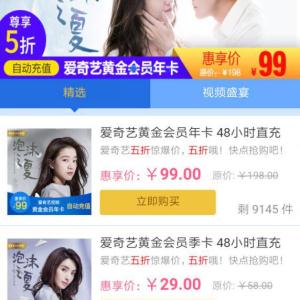 爱奇艺黄金VIP 优酷黄金会员 年卡 低至5折