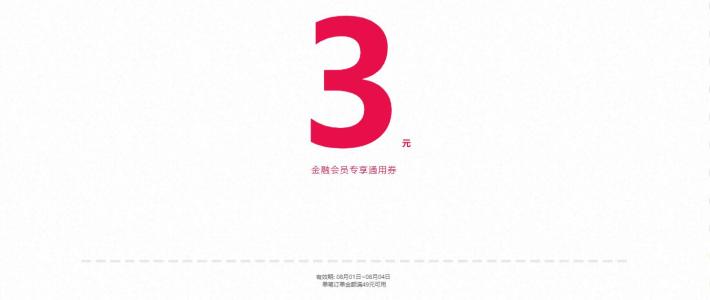 点链接,登录京东,可领取京东金融专享通用券,在京东购物,单笔订单金额满49元可用,可以抵用3元现金。自领取之日起4天有效。