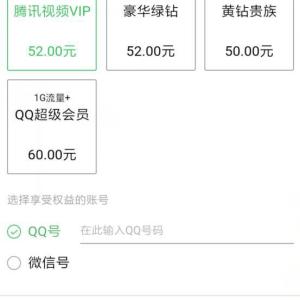 微信充流量+腾讯视频VIP/豪华绿钻/豪华黄钻/QQ超级会员优惠