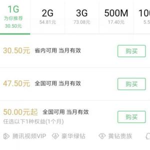 进入微信,点 我,钱包,手机充值,输入 手机号 后,点 更多流量包。充值1GB流量,可能会出现优惠套餐选项,可以搭配一个月的 腾讯视频VIP/豪华绿钻/黄钻贵族/QQ超级会员,任选其一,享受优惠套餐。