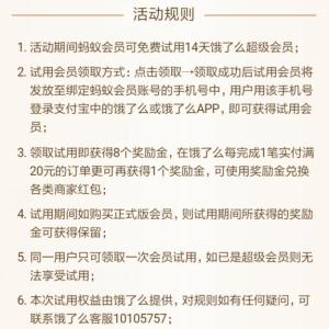 饿了么超级会员 14天 奖励金 8个 蚂蚁会员免费兑换