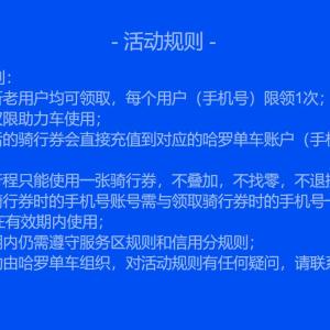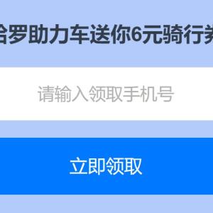 点链接,请输入手机号,点立即领取,可领取6元哈罗助力车骑行券。可以免费骑哈罗助力车,本券新老用户均可领取,每个用户限领1次。仅限助力车使用您。每次行程只能使用一张骑行券,不叠加,不找零,不退换。领取后需在有效期使用。