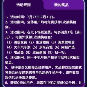 沃钱包抽Q币、爱奇艺视频会员、购物娱乐通兑券