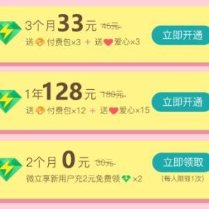 QQ绿钻豪华版暑期大促 微立享新用户充2元,免费领2月绿钻豪华版