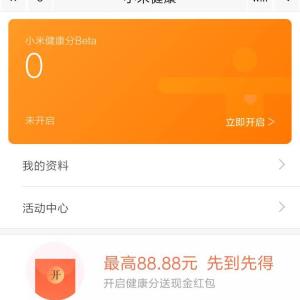 点链接,登录小米账号,没有的话,可以注册一个。点《最高88.88元 先到先得》《开启健康分送现金红包》,点立即领取,填写性别、生日、身高和体重,立即开启,获得健康分,再点新手福利,立即领取,领……