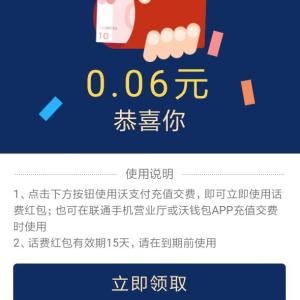 联通用户点链接,下载联通手机营业厅,在中部横幅中,找到《你看世界杯 沃来送话费》,输入手机号和验证码,可领取随机金额的话费券。小希领到了0.06元。然后返回,进入交费充值,其它金额,输入你获……