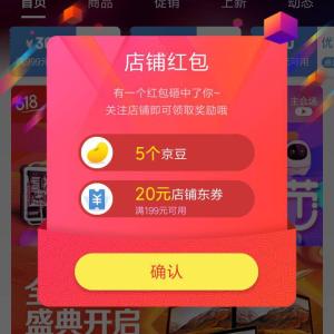 京东关注店铺领京豆 可抵现金