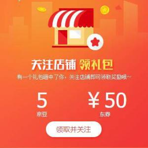 京东关注店铺领京豆 可抵现金