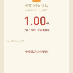 部落冲突1元现金红包