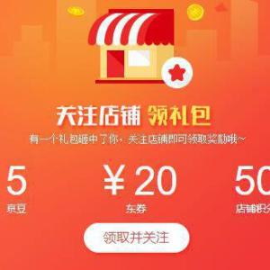京东关注店铺领京豆 可抵现金