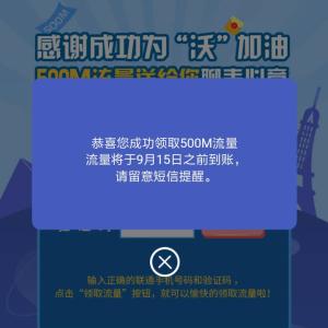 联通500M流量 联通客服为沃加油活动