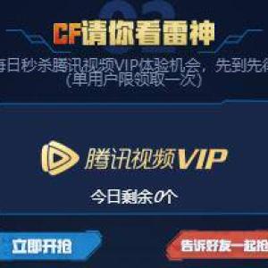 CF玩家点链接,登录QQ,绑定大区,点 立即开抢,可领取一定天数的腾讯视频VIP会员,每天上午10点来抢,先到先得,每人限领取一次。小希刚刚领取的时候,已经没有了,明天继续吧^_^