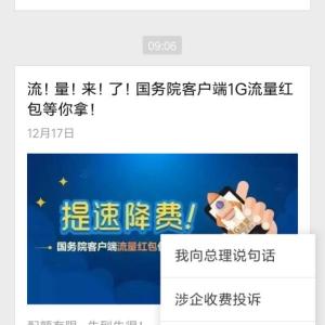 进入微信,点右上角+,添加朋友,公众号,搜索 中国政府网,关注,点 微互动,点 提速降费送你流量,稍等片刻,点击进入,选择 运营商,每人每天三次摇奖机会,每天8点开抢。如果今天没中或提示名额用完,可以明天继续,一人仅可中奖一次,次月到账。