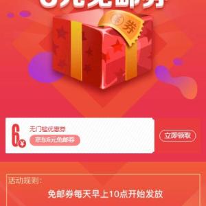 点链接,登录京东账户,每人可以领取一张6元免邮券。每天10点开始领,如果提示已领完,可以下一个整点再来领。