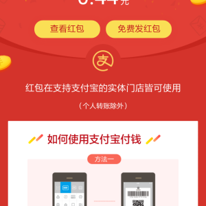 安装支付宝APP,点下面的链接,或用支付宝扫二维码。点 立即领取,可以获得随机金额的到店红包。红包可在线下向商家付款时抵扣现金。