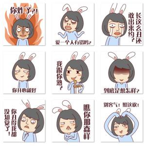 别客气,照这砍!有点点毒舌,贱贱的兔耳朵少女表情一组,自带吐槽,画师顾三千作品。