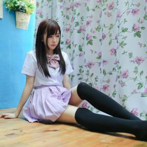 清新可爱的双马尾萌妹,雨宮小铃初夏水手领制服摆拍,摄影师七海ソラ作品。