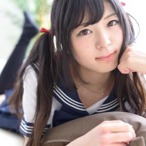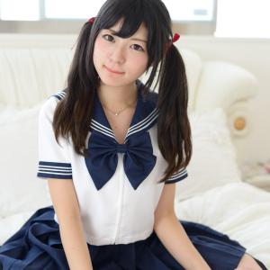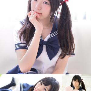 手捧桃心,重温校园时光。未凛蓝白水手服萌系摆拍,摄影师イヨ、masuoo作品。