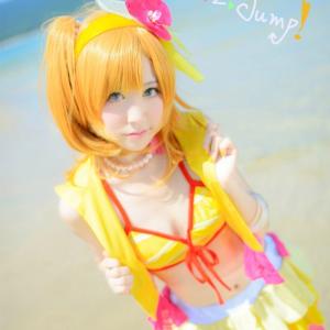 爱吃面包的少女泳装秀,肉龟子激萌扮演LoveLive!高坂穗乃果摆拍一组。