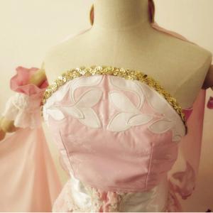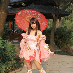 设计师自行裁剪,绣花的剑网三定国秀萝粉色COS服,做完感觉整个人都萌萌哒!
