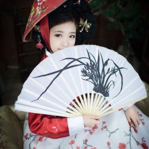 金玉丝线攒成坠,青色玉纱铺扇面。兔娘持扇韩服摆拍。