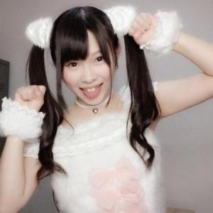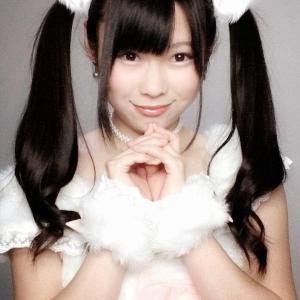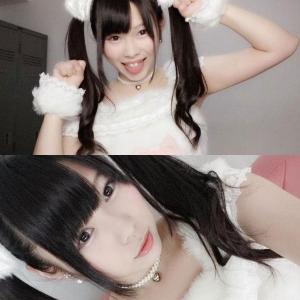 绑扎双马尾的猫耳朵发卡,蝴蝶结上衣,扮小猫吐舌卖萌,結城ちか自拍。