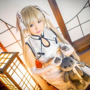 金色双长马尾,中国风旗袍,Hayakawa臣儿缘之空萌娇娘春日野穹Cosplay。