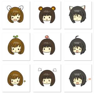 头上长着兔耳朵、猫耳朵、或者呆毛的短发女生嘟嘴、开心、生气的模样,画师豆包兔兔兔短发女生头像。