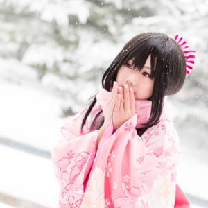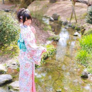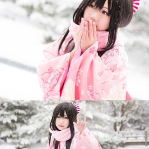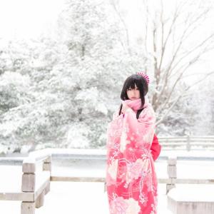 踏着碧水青苔,扶着粉樱白雪,雪瀬 ハル和三夏穿着和服清萌摆拍,问候早春的樱花。摄影师まさしし作品。