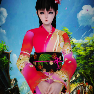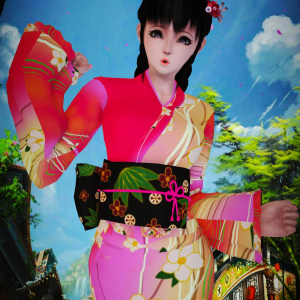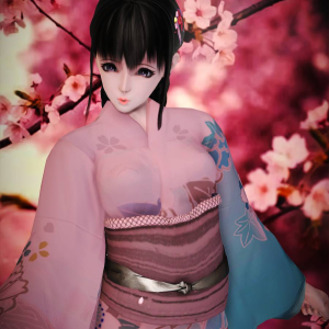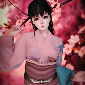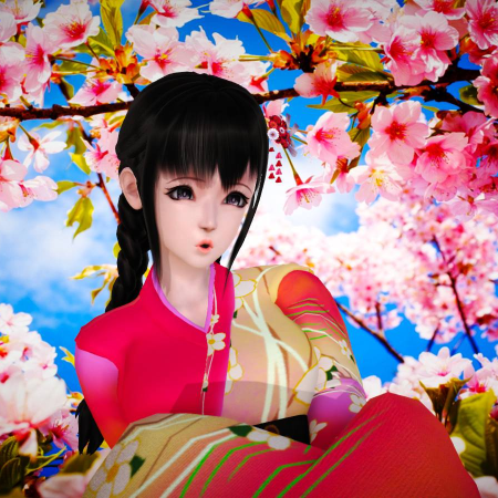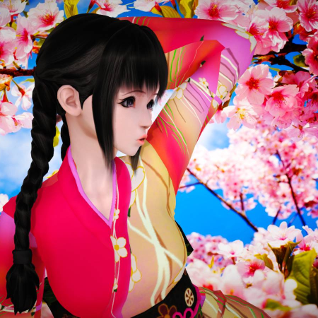 你们的小希又回来啦,樱花背景,长长的麻花辫,粉色的和服浴衣,还有清澈无比的大眼睛,有没有粉小希呢~