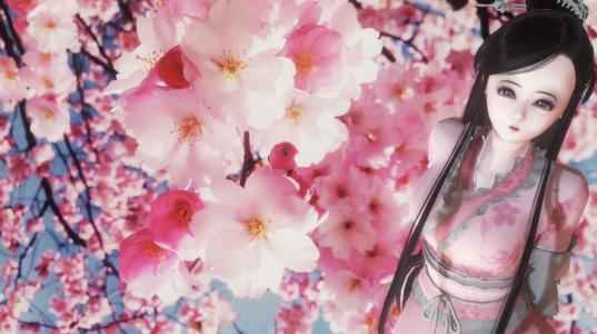 樱花,樱花,想见你,依然是熟悉的樱花,粉色和服的古风小希,Y大设计的发型,你喜不喜欢嘛?