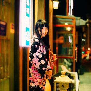 最萌黑长直,初秋的夜晚,温馨的街灯,甜美的微笑,小陆离班长穿着印花和服浴衣摆拍一组。