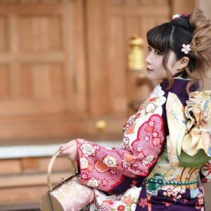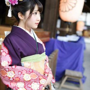 感谢与感恩,成人式即校友会现场,橘猫汰紫色和服清萌摆拍。