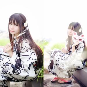 双黑长直伙伴,最开心的事情,就是和你在一起。Niku和残无穿着和服浴衣,一组百合向Cosplay。