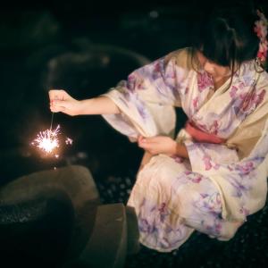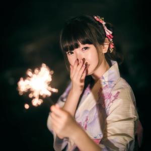 没有繁星的夜晚,点燃仙女棒,用这小小的花火点亮寂寞,由穆拍摄的雪雪穿着和服孤独的花火主题摆拍一组。