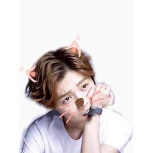 轻咬手环,作嘘手势卖萌,头上长小草,猫耳猫胡子的鹿晗头像,勋鹿结制图。