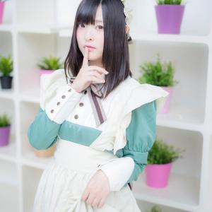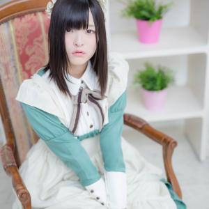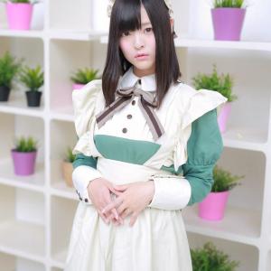 作嘘手势卖萌,轻拾复古的恬静,肉球あやと穿着绿色长款女仆装清萌摆拍,摄影师まさしし作品。
