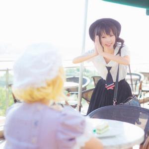 各种萌,少女秘封俱乐部中的两位成员梅莉和莲子的Cosplay摆拍。