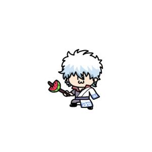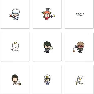 嘟嘴卖萌,坂田银时、神乐、志村新八(只有眼镜)、定春、土方十四郎、冲田总悟、近藤勋、桂小太郎和伊丽莎白等九位《银魂》角色小头像,画师大绵羊BOBO作品。
