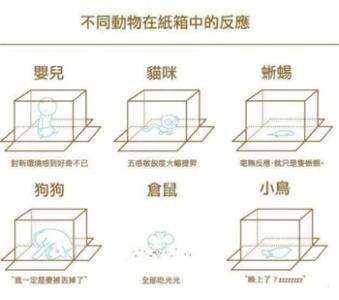 把婴儿,猫咪,蜥蜴,狗狗,仓鼠,小鸟放到纸箱里,各会有什么反应呢?