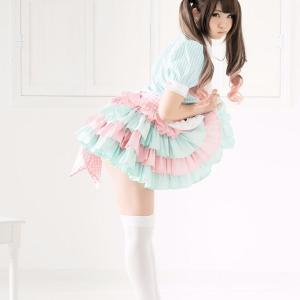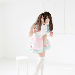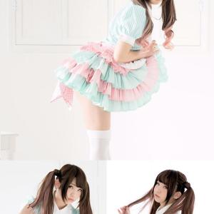 刘海儿是甜甜哒糖果,南ふうたそ粉蓝马卡龙女仆装摆拍,摄影师七海ソラ作品。