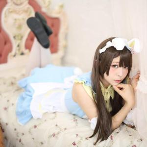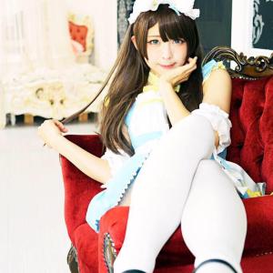 雨宮小铃粉蓝兔耳朵女仆装摆拍
