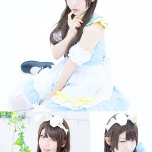 戳脸卖萌,雨宮小铃穿着粉蓝女仆装萌系摆拍,摄影师七海ソラ作品。