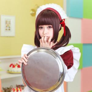 撇嘴卖萌,贪吃可爱,俏皮呆萌的双马尾女仆,とめと穿着棕红色女仆装激萌摆拍,摄影师すかちゃんさん作品。