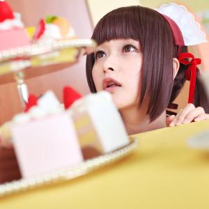 吐舌、吃包卖萌,黄色原创女仆装,あっきん激萌扮演22世纪的女仆。摄影师ロウガ作品。