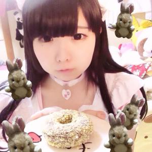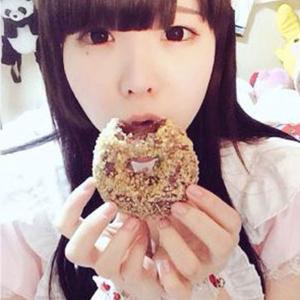 轻吞圆圆哒的面包圈,八宵うさぎ穿着粉色女仆装,卖萌吃包表情四连拍。