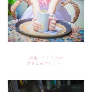 “主人,欢迎回来,要到店里坐坐么?”萌语配萌图,小圆脸雪雪粉色女仆装在咖啡馆剧情小长条。