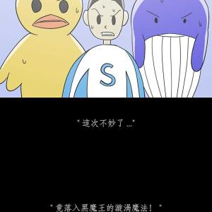 超级小子,鸭子小弟和鲸鱼小弟遭遇了堵头的攻击,堵头站在高处,而三人在河里,处于低处。超级小子灵机一动,将鸭小弟抛出,鸭子努力张开双翅,竟然成功滑翔起来,撞到了堵头,堵头跌到了河里,此刻……