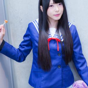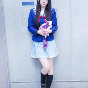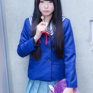 拿着棒棒糖,抱着紫色烤番薯布偶的萌妹子,雪瀬ハル扮演《境界的彼方》的名濑美月。